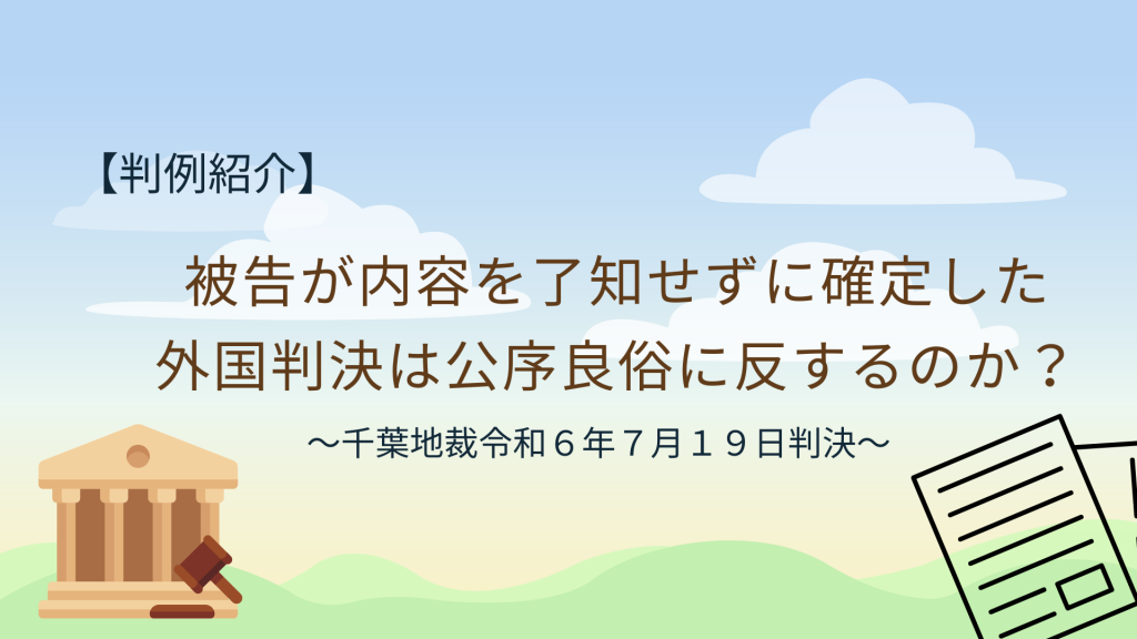 被告が内容を了知せずに確定した外国判決は公序良俗に反するのか?【千葉地裁令和6年7月19日判決】