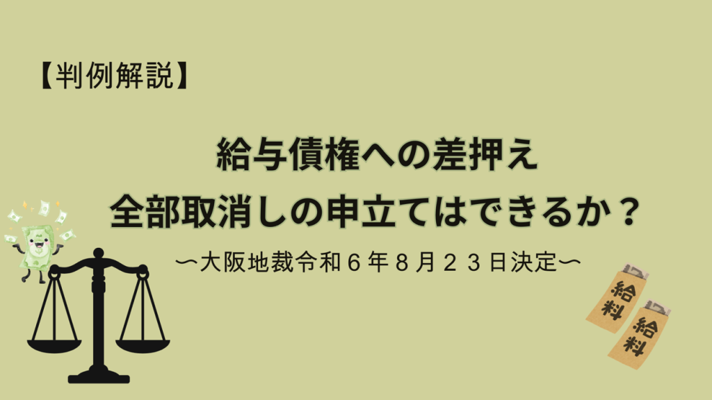 給与債権への差押え?全部取消しの申立ては可能か?【大阪地裁令和6年8月23日決定】
