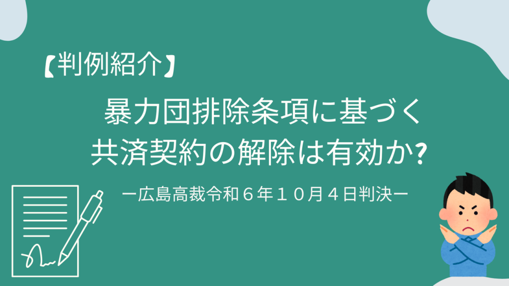 暴力団排除条項に基づく共済契約の解除は有効か?【広島高裁令和6年10月4日判決】