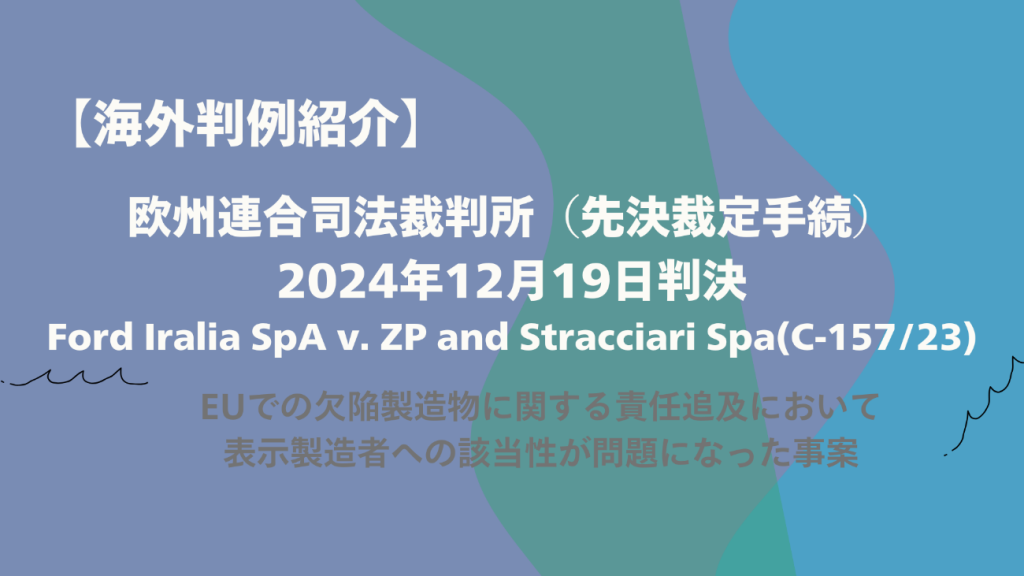 外国裁判例のご紹介(欧州連合司法裁判所(先決裁定手続)2024年12月19日判決/Ford Iralia SpA v. ZP and Stracciari Spa(C-157/23))