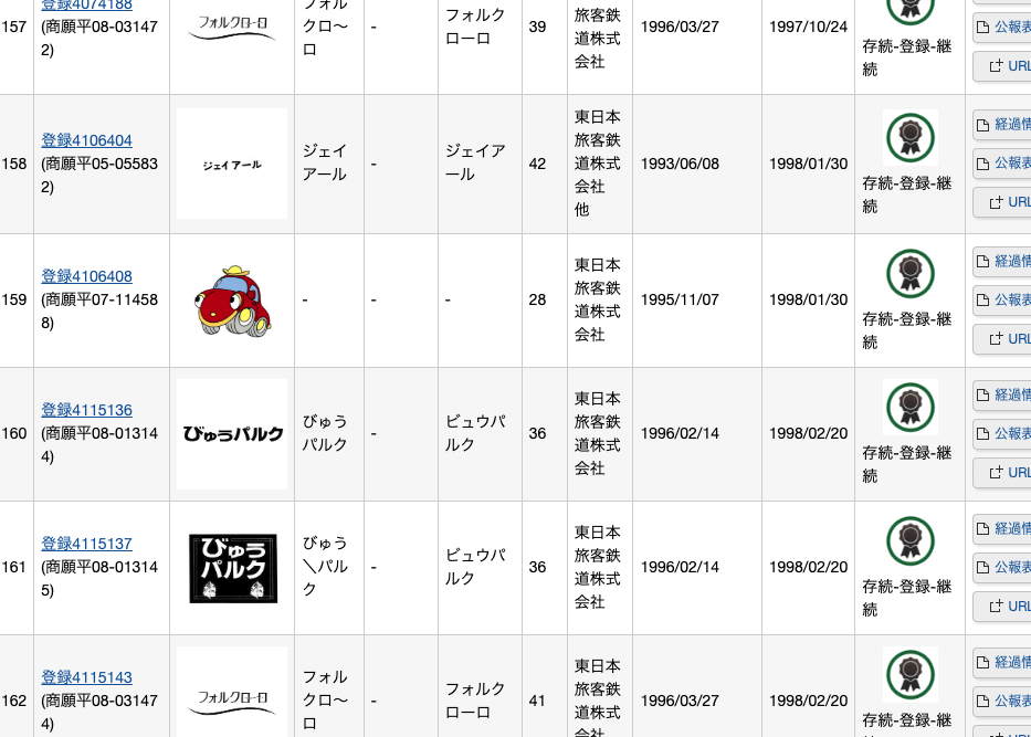 JRほどの会社が著名キャラクターを登録してないはずはないので、これは登録ができないんだろうと推測をせざるを得なくなりました。
