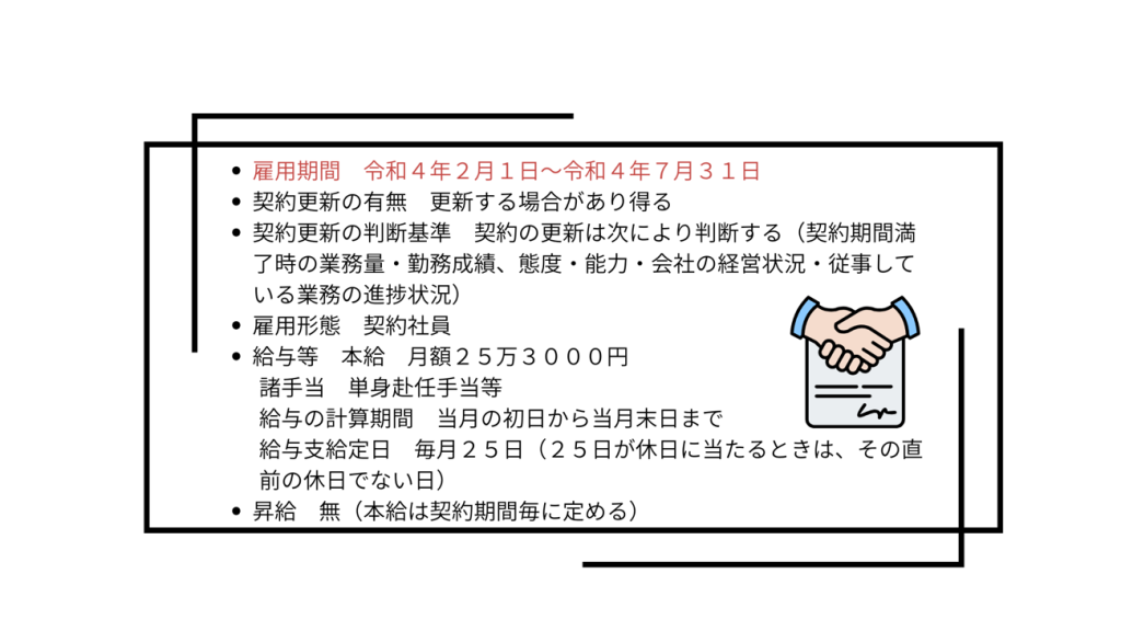 他方で、Y社側は、本件契約には、雇用期間の定めがあり、令和4年2月1日から同年7月31日までの期間の定めのある契約であると反論していました。