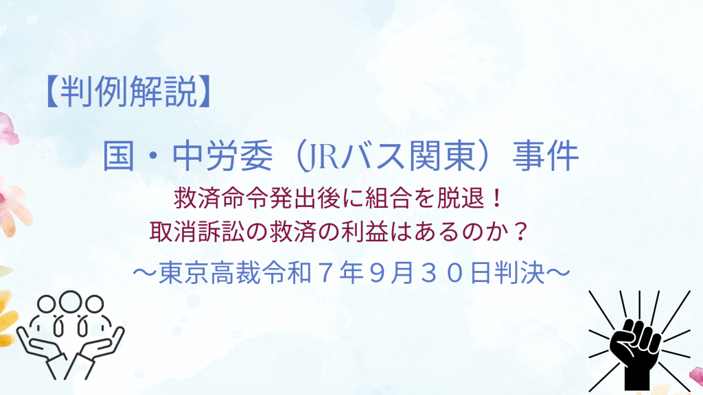 救済命令発出後に組合を脱退!救済の利益は認められるか?【国・中労委(ジェイアールバス関東)事件】