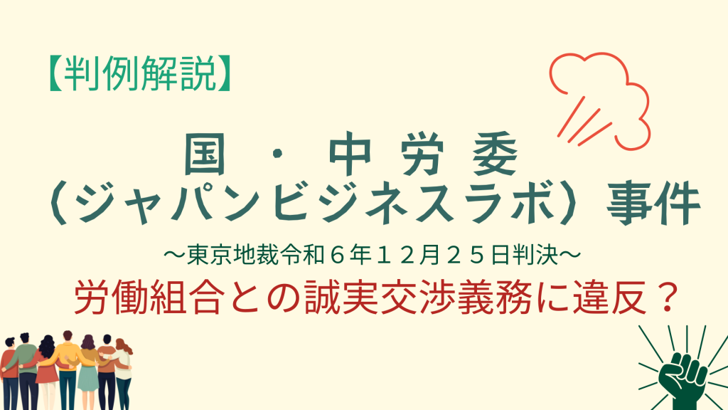 裁判例のご紹介(国・中労委(ジャパンビジネスラボ)事件・東京地裁令和6年12月25日判決)