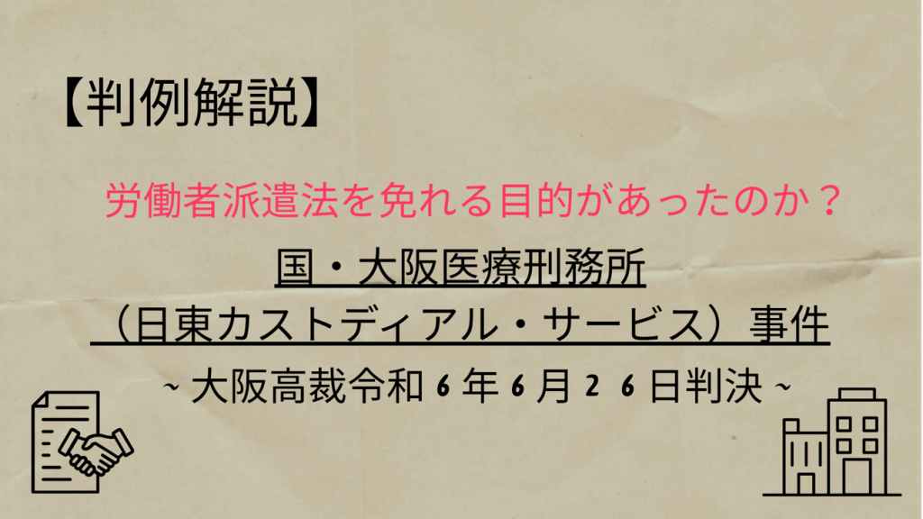 労働者派遣法を免れる目的があったのか?【国・大阪医療刑務所(日東カストディアル・サービス)事件】