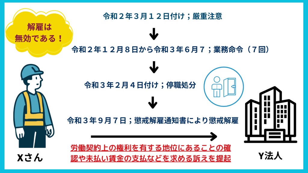 「Y法人は、令和3年9月7日、Xさんに対して本件懲戒解雇を行っているところ(…)」