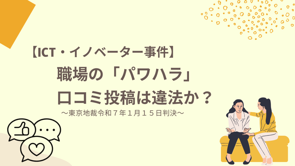 職場の「パワハラ」口コミ投稿は違法か?【ICT・イノベーター事件】