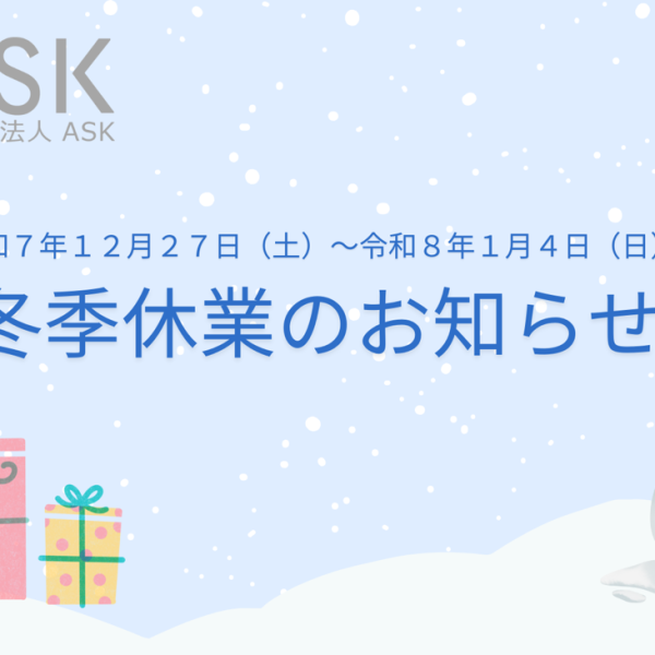 令和7年12月27日から令和8年1月4日まで冬季休業を頂戴致します。
