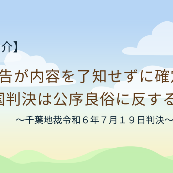 被告が内容を了知せずに確定した外国判決は公序良俗に反するのか?【千葉地裁令和6年7月19日判決】 2026.01.19 外国判決の承認・執行制度とは もしあなたが外国で受けた判決を日本で執行したいと考えた場合、どうしたらよいのでしょうか。「せっかく外国で判決をもらったけど、また再び日本で裁判をやり直すことになるのか?」「でも外国判決と違う…