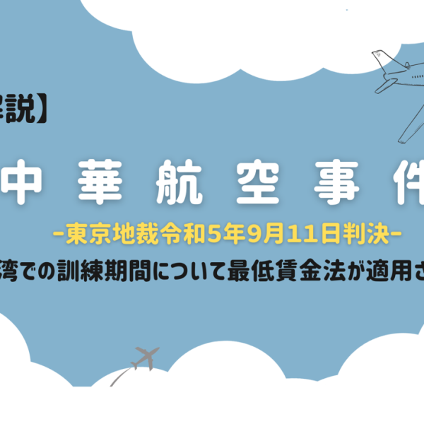 台湾での訓練期間について最低賃金法が適用されるのか?【中華航空事件】 2026.01.14 当社は、台湾に本社を置く外国企業です。神奈川県内にも事業所があります。日本国内で採用された従業員から、台湾において研修した際の賃金について、賃金の額が日本の最低賃金法を下回っているのではないかという指摘を受けました。この…