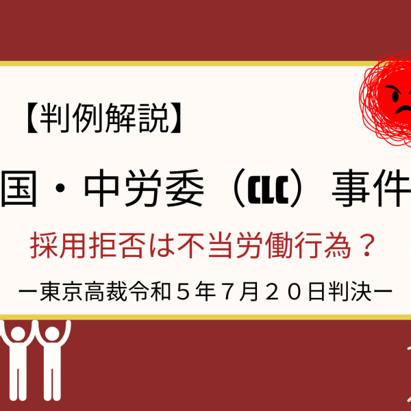 採用拒否は不当労働行為に当たるのか?【国・中労委(CLC)事件】 2026.02.13 当社は、関東圏で学童保育事業を行っております。今回、川崎市内で学童保育事業を受諾することになり、現在の指導員を対象に説明会を実施し、当社で働きたい人を募集しました。ある方が、組合活動を熱心されており、当社の方針とも合わな…